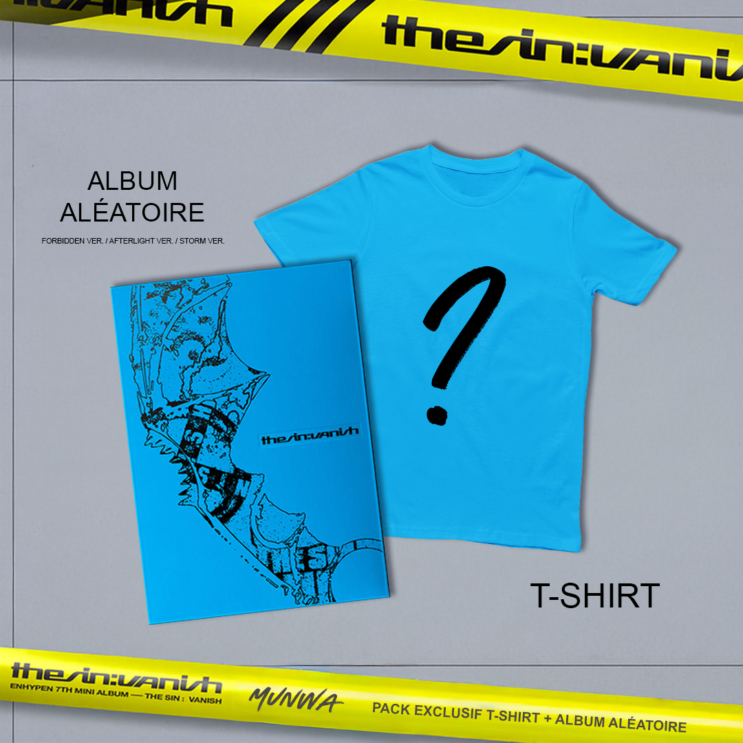 Ce pack réunit le nouvel album THE SIN : VANISH dans une édition officielle aléatoire (FORBIDDEN Ver. / AFTERLIGHT Ver. / STORM Ver.), accompagné d'un t-shirt exclusif, pour une immersion totale dans l’univers sombre, narratif et puissant de cette nouvelle ère.