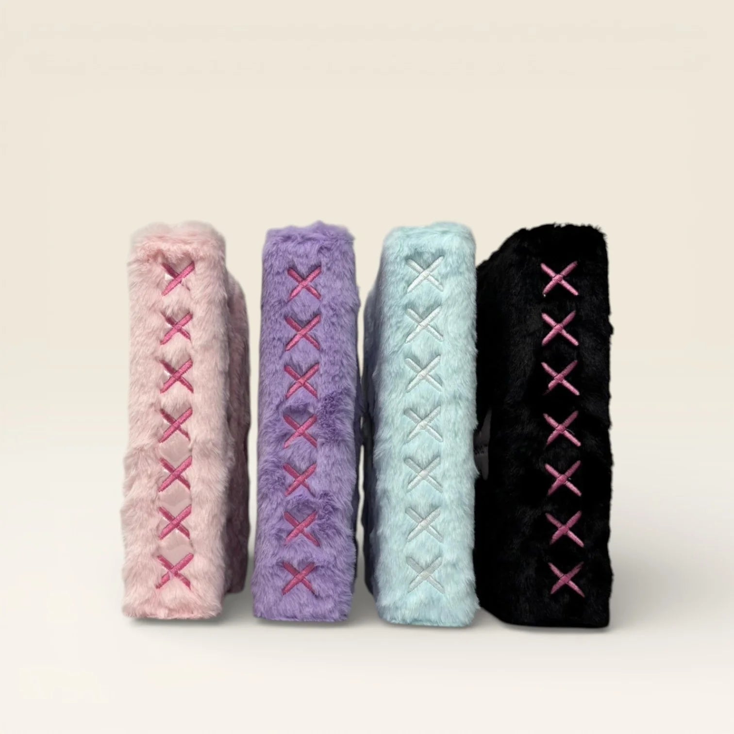 Sa texture fluffy violette apporte une vraie dimension esthétique. Le mini cadre transparent intégré permet d’exposer ton ult bias directement sur la couverture. Un accessoire à la fois pratique et visuellement fort.