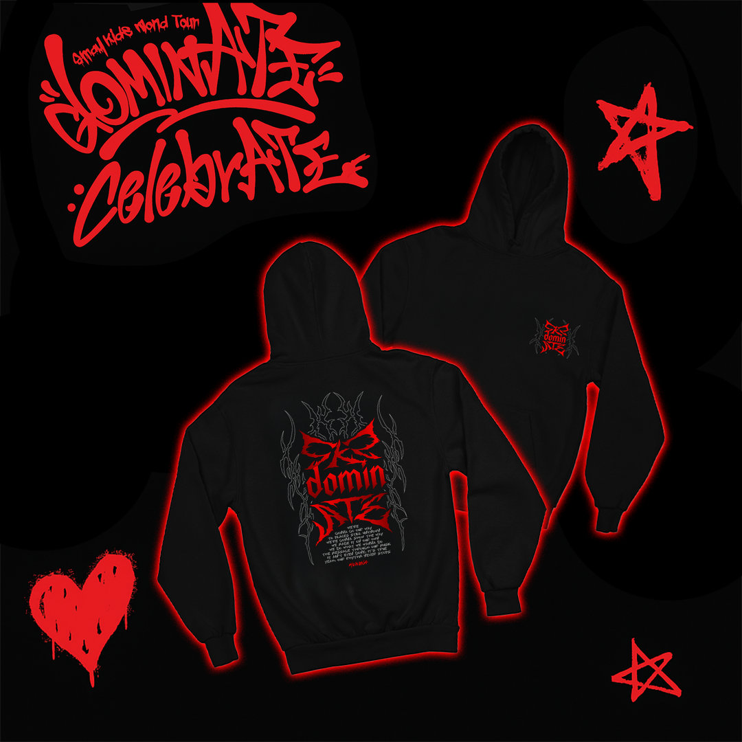 Le sweat DOMINATE s’inspire de l’univers de Stray Kids et de l’énergie brute de leur tournée mondiale.